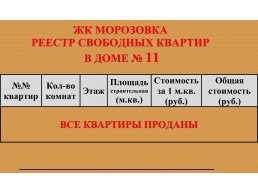 В корпусе № 11 продана последняя свободная квартира № 12. На сегодняшний момент приобрести 1-, 2- и 3-комнатные квартиры можно в корпусах № 4 и № 6.